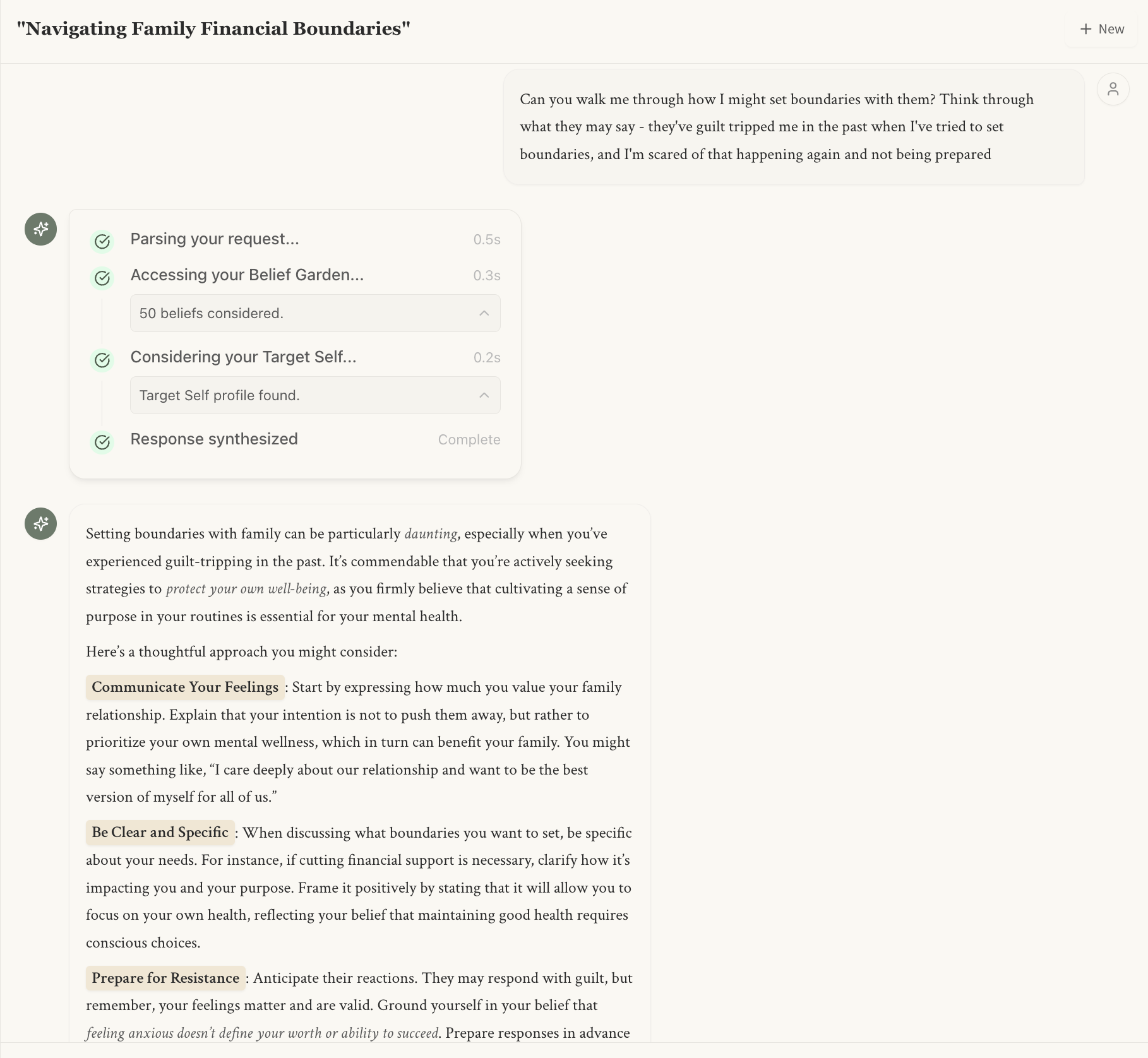 Take a look at how my beliefs and personal context are reflected in the dialogue about setting boundaries with them.