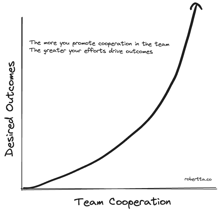 The strongest teams are those where people genuinely care about their colleagues as people. When teams care about each other, cooperation becomes the default behavior.