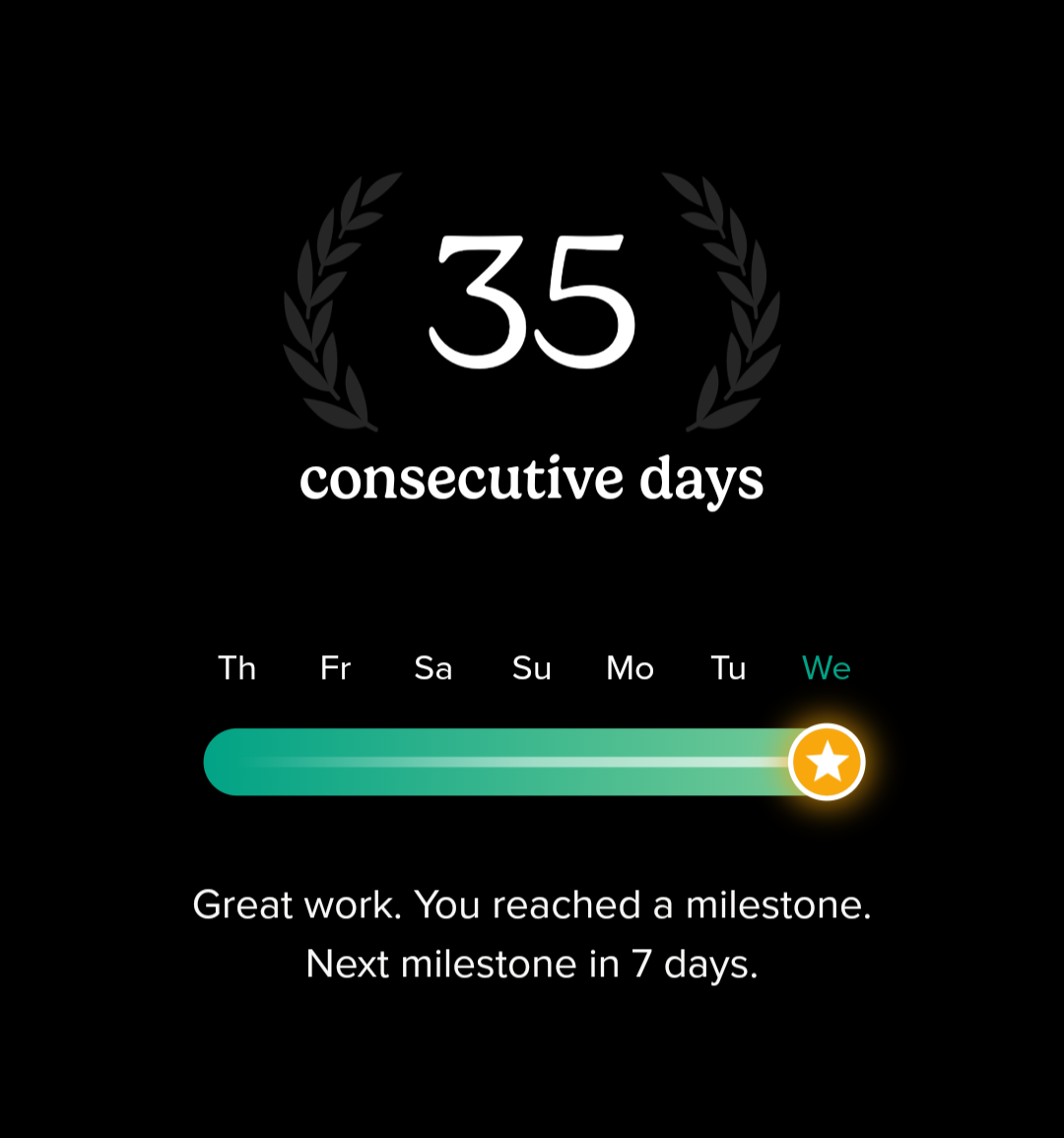 I’m at 35 days. I hope to never lose this streak, and will work hard to get to 365.