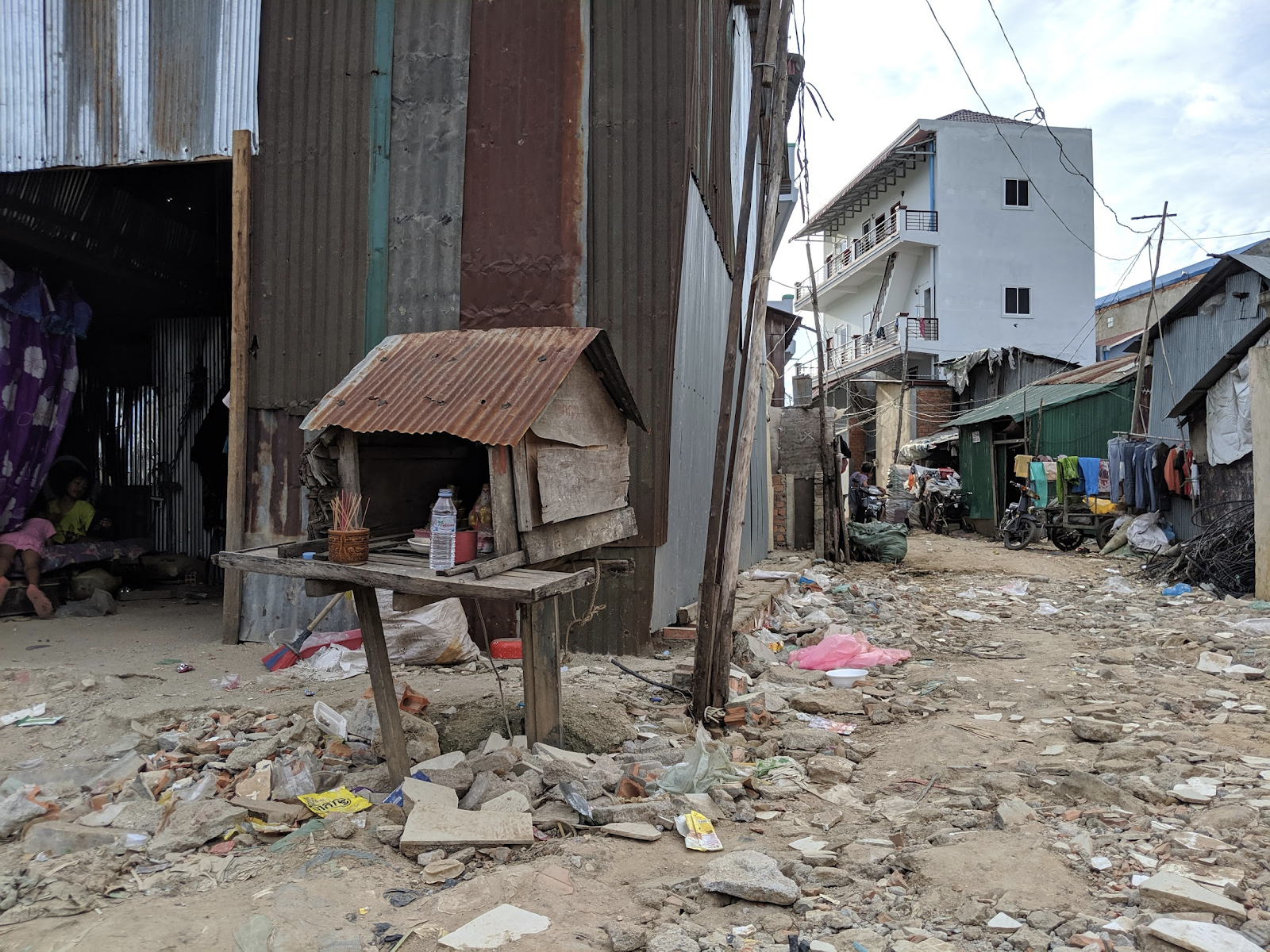 I spotted a makeshift Buddhist shrine at the entrance to one of the community homes, and I immediately remembered the strong smell of incense that permeated my childhood home.